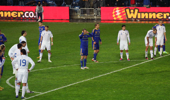 Игра получилась несколько сумбурной, что настораживает, ведь Блохин заявил, что состав, который будет заявлен на матчи Евро, определен на 80%. В первом тайме хороши были игравшие впереди Девич и Воронин. Оба они боролись, активно отбирали мяч, не гнушались отрабатывать в обороне, старались, создавали моменты. Разительный контраст с вышедшим во втором тайме Милевским, который честно простоял отведенные ему 45 минут аки соляной столп. Возникло чувство, что форвард киевского «Динамо» попросту отбывал номер. Алиев был заметно активнее, чему подтверждением голевой пас на Ярмоленко. В защите у нас все как обычно. Жалко Гусева, вновь вынужденного закрывать не самую любимую позицию правого бека, но ничего не попишешь – с Федецким ситуация неясна, Бутко молод и недостаточно опытен. А откуда у нас еще хорошие правые защитники? На ЧМ-2006, помнится, эту позицию вообще Вячеслав Свидерский закрывал.