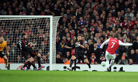 Бакари Санья, 13. Киран Гиббс, 15. Александр Сонг, 56. - Марк Ван Боммель, 5. Антонио Ночерино, 85. Златан Ибрагимович, 86.