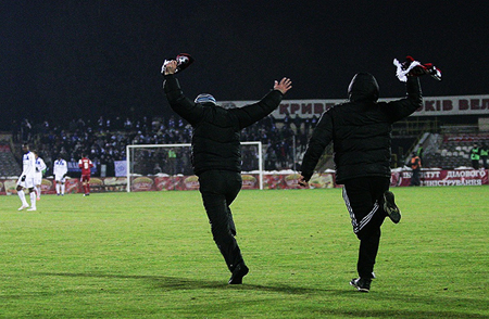 Через добу проявила себе вже криворізька «кузьма», правда, продемонструвавши не свою принципову позицію, а бидлюцьке єство. П’яні молодики з самого початку ставилися до гостей з «Динамо» з великою ненавистю. Але переконавшись, що на образливі вигуки гравці киян не реагують жодним чином, «золота молодь» перейшла до більш радикальних заходів. На поле полетіли сніжки й апельсини. Ціллю виступали гравці виїзної команди й судді, а згодом – сектор динамівських ультрас. Кияни на провокацію піддалися і почали жбурляти у конкурентів пластиковими сидіннями. Але криворізьким шкідникам того теж виявилося мало й вони почали вибігати на футбольне поле.