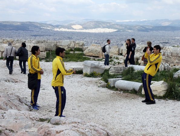 Осматривая Акрополь, возле Парфенона неожиданнно встречаем харьковких футболистов, которые тоже пришли сюда на экскурсию.