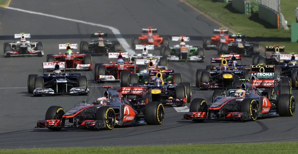 Старт першої гонки сезону – це завжди неймовірне дійство, очікування якого подібно до голу, забитого на останній хвилині компенсованого часу. Вболівальники щасливі, а учасники змагань припускаються помилок або витискають максимум можливостей із епізоду. От і в Альберт-парку не могло статися інакше: Льюіс Хемілтон на якусь крихту часу затримався і після того міг тільки уважно вивчати задню конструкцію МР4-27 свого напарника Баттона. Ромен Грожан програв ще більше – швейцарець відкотився на шосте місце. Третім став Шумахер, четвертим Росберг, а п’ятим Феттель. Знову програв старт Марк Веббер – чемпіонат змінився, а проблеми австралійця залишшилися такими ж. Крім того в першому повороті його машину зачепили Ріккардо та Хюлькенберг, для німця гонка на цьому закінчилася. З глибин пелотону відмінно прорвалися Алонсо, Масса, Ряйкконен та Перес.