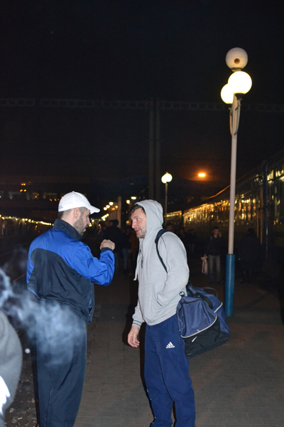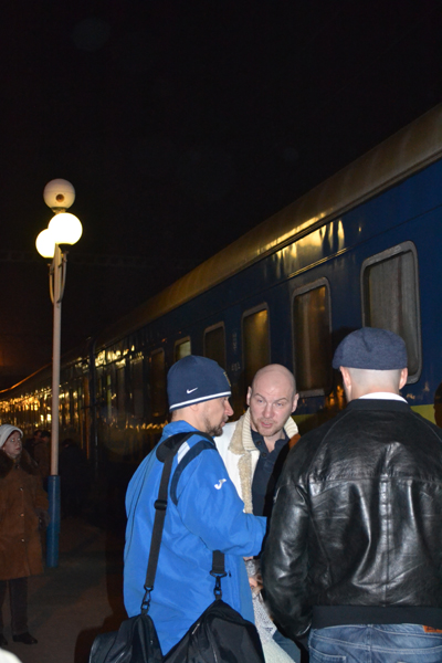 «Две победы» - таким фанатским зарядом болельщики провожали на поезд № 38 «Киев – Донецк» своих кумиров – хоккеистов киевского «Сокола». Почему именно таким зарядом? Потому что «Соколу», который сейчас уступает «Донбассу-2» в финальной серии плей-офф со счетом 0:2, надо отыгрываться. Вот поэтому активисты сайта хоккейных болельщиков «Гнездо» и решили таким образом настроить «соколят» на нужный лад.