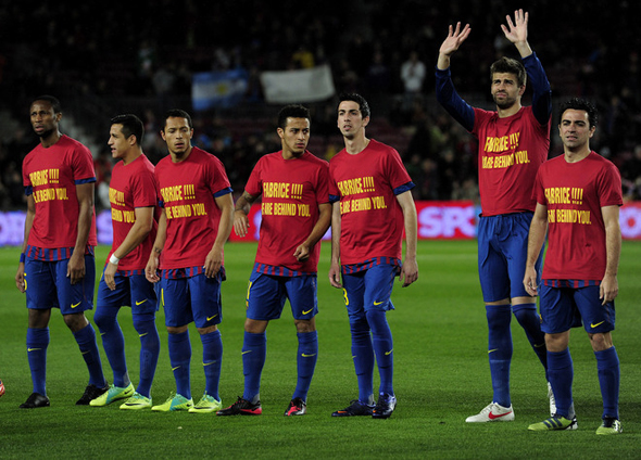 P.S. Каталонцы также, как и весь футбольный мир, поддержали Фабриса Муамбу. «Фабрис!!! Мы с тобой!», - с такой надписью на футболках игроки «Барселоны» вышли перед матчем с «Гранадой».