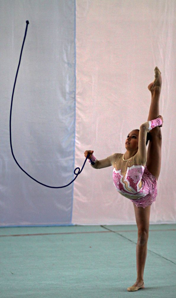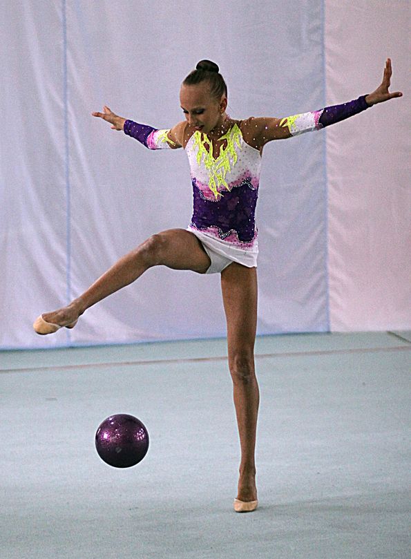 Упражнение с мячом в исполнении одного из лидеров сборной команды кандидатов в мастера спорта Одесской области Виктории Савельевой