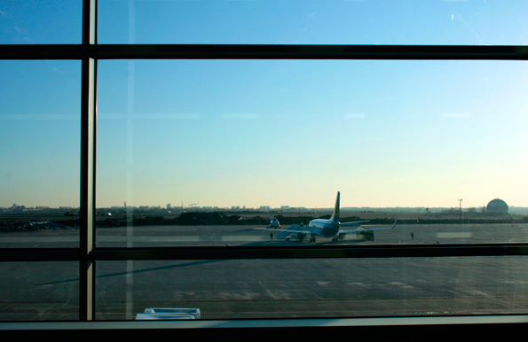 Одинокий самолет на взлетно-посадочной полосе в ожидании пассажиров из делегации «Металлиста»