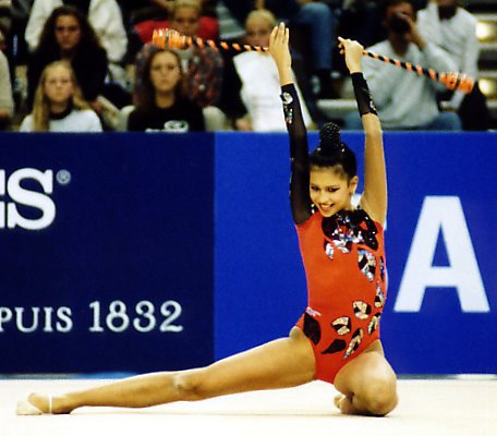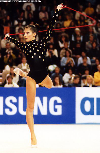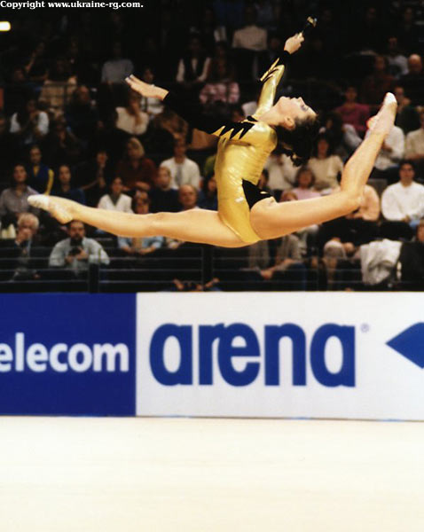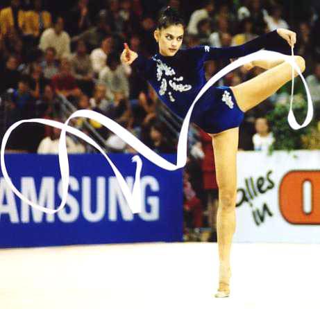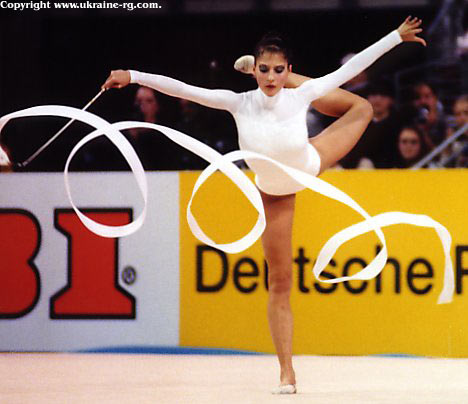 Особенно хорошо удался Елене ее коронный вид – лента. Она блестяще исполнила упражнение под инструментальную мелодию греческой группы Yanni - One Man’s Dream («Мечта одного человека»). Данная композиция по праву считается одной из лучших в истории мировой гимнастики. Елена с легкостью и непринужденностью справилась со всеми элементами, одновременно демонстрируя филигранное владение предметом. В самом деле, даже сейчас такой четкий рисунок ленты встретишь не часто.