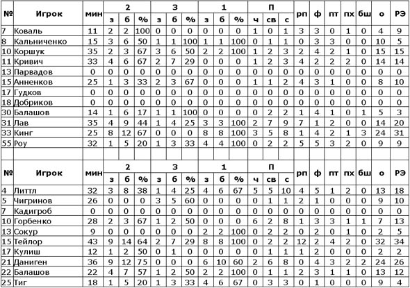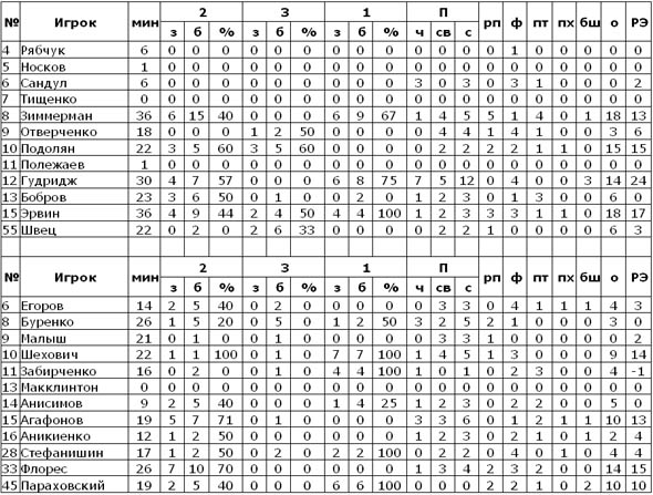 После большого перерыва абсолютно ничего не изменилось, Кинг и Кальниченко продолжали уверенно бомбардировать корзину «Азота», сохраняя для своей команды преимущество в 10+, правда, сник во второй половине Лав, активность в атаке которого была просто неприметной. Похоже, одесситы слишком рано поверили в собственный успех, за что сполна и поплатились. В четвертой четверти рывок гостей, инициированный Тейлором и Данигеном, сделал счет 90:85, дальнее попадание Горбенко, а затем и двухочковый от Литтла под занавес периода перевели игру в овер-тайм. Дополнительную пятиминутку более уверенно провели поймавшие кураж гости, сверхрезультативность американского трио днепродзержинцев позволила выиграть команде Кайриса овер-тайм со счетом 13:21.
