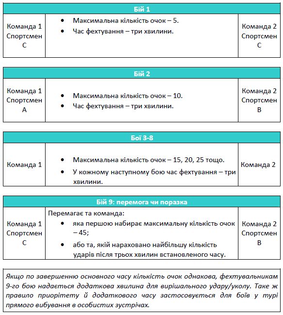 • Якщо по завершенню матчу фехтувальники набрали однакову кількість очок, для визначення вирішального удару суддя має використовувати відеоповтор.