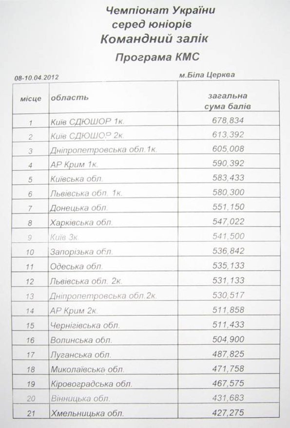 Завершился чемпионат Украины среди юниоров