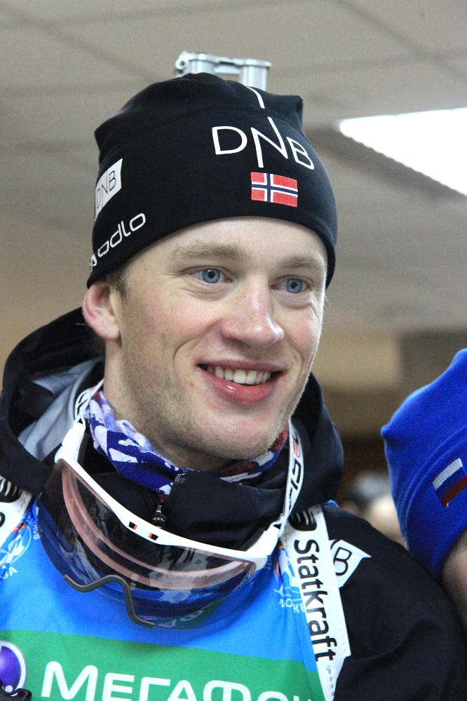 Третьими, держась за руки, финишировали норвежец Эмиль-Хегле Свендсен и обладатель Кубка мира этого сезона француз Мартен Фуркад.