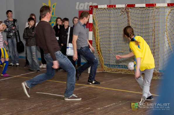 Ну а завершилась встреча импровизированным матчем, в котором наши футболисты поочередно сразились с командой девушек и командой парней школы.