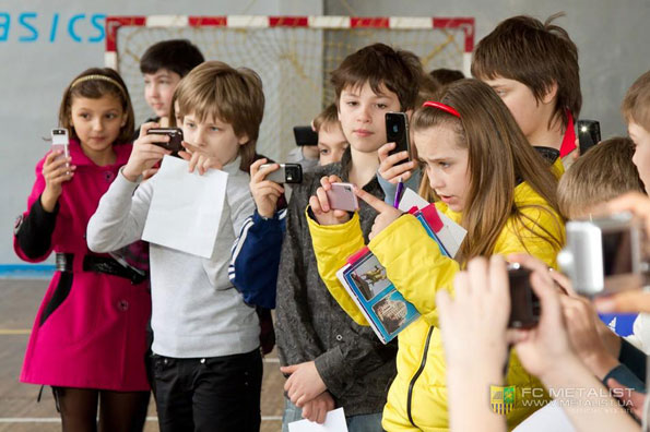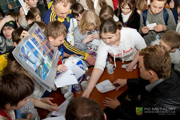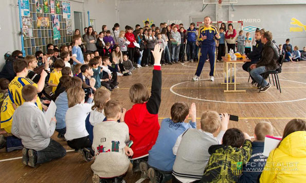 После небольшой экскурсии и встречи с администрацией ребята проследовали в спортивный зал, где их уже ждали преданные болельщики. Встреча продолжилась в формате вопрос-ответ, в рамках которой любой школьник мог узнать все подробности из жизни футболистов.
