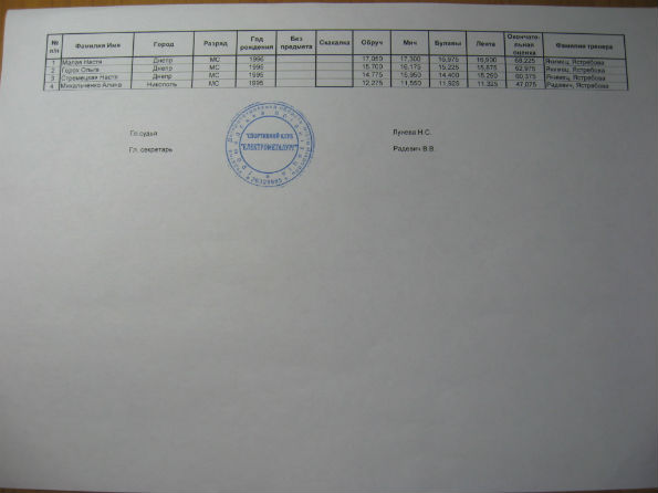 - Все старшие участницы, выступавшие по программе мастеров, по КМС - Алена Ганаженко, из юношеских разрядов – Алиса Панова, Ксения Коваленко, Арина Красноруцкая, Афина Кузнецова.