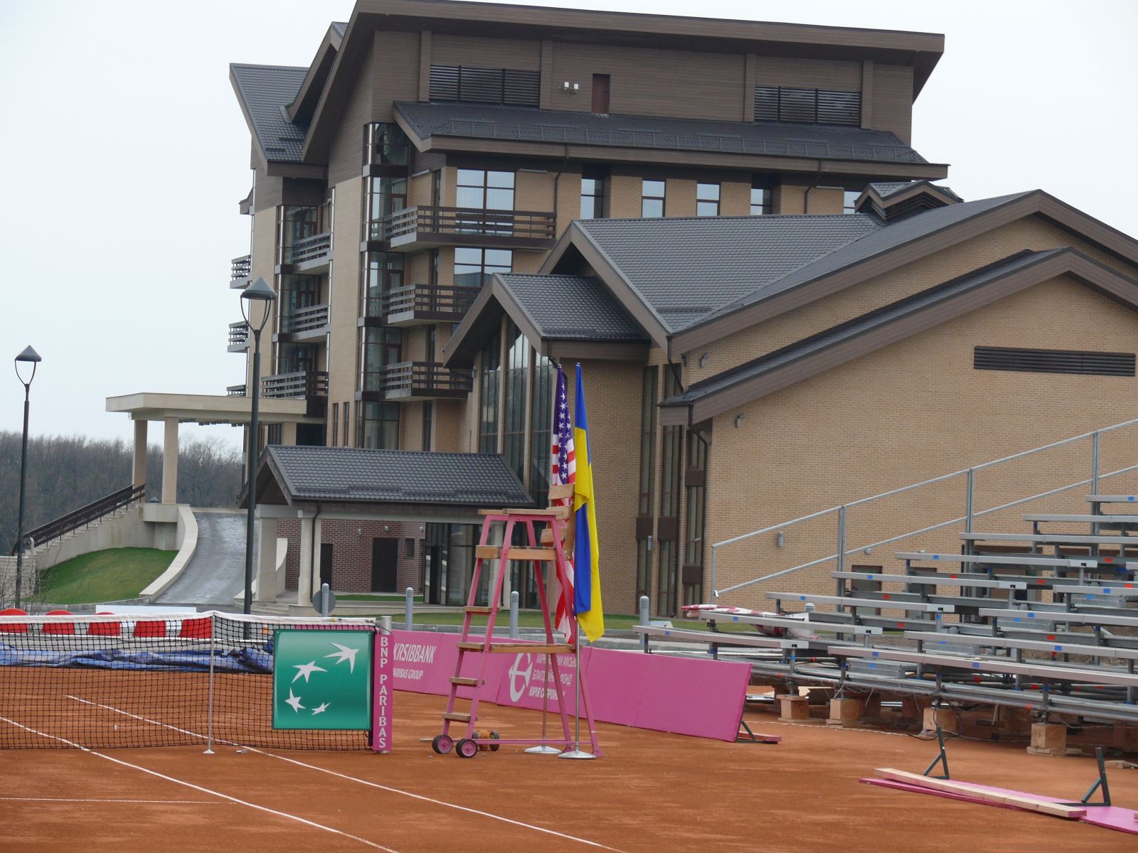 К вашему вниманию несколько фотокарточек о подготовке женской сборной Украины и кортов на территории Superior Golf & SPA Resort, где пройдет матч плей-офф Кубка Федерации Украина – США.