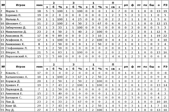 Первый матч серии между «Будивельником» и Одессой стартовал сегодня в Киеве, победу с убедительным преимуществом одержали хозяева паркета. Начало встречи прошло в равной борьбе, лишь к середине дебютной десятиминутки стало вырисовываться преимущество столичных баскетболистов, 8 очков подряд от Зака Морли подарили перед коротким перерывом «строителям» гандикап в 6 баллов – 22:16. Во втором периоде одесситам удалось выровнять игру, точные броски из-за дуги от Кривича, постепенно нивелировали разницу в счете, в середине четверти очередная трешка и вовсе вывела «акул» вперед. Киевляне ответили сопернику тем же оружием: дальние броски Малыша и Макклинтона достигали цели и по итогам первой половины «гладиаторам» удалось сохранить шестиочковое преимущество – 49:43. Склонить чащу весов в свою сторону «Будивельнику» удалось после перерыва. Активно заиграл в трехсекундной зоне Анисимов, с чем оппоненты просто не могли справиться. Следует отметить, что не хватило сегодня игры под кольцом Шона Кинга, который просто проигрывал большинство подборов. Постепенно киевляне довели преимущество до двухзначного числа и уже перед последней четвертью имели в активе +14. Заключительный игровой отрезок подопечные Митровича провели не менее уверенно, довершив разгром Одессы с общим счетом 94:69.