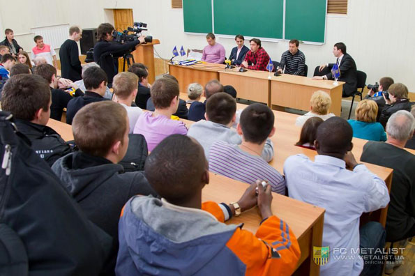 После прослушивания песни «Simply the best» в исполнении студентки этого ВУЗа делегация «Металлиста» в составе Владимира Дишленковича, Милана Обрадовича и тренера команды Юрия Ушмаева приняла участие в торжественном открытии уголка «Металлиста».