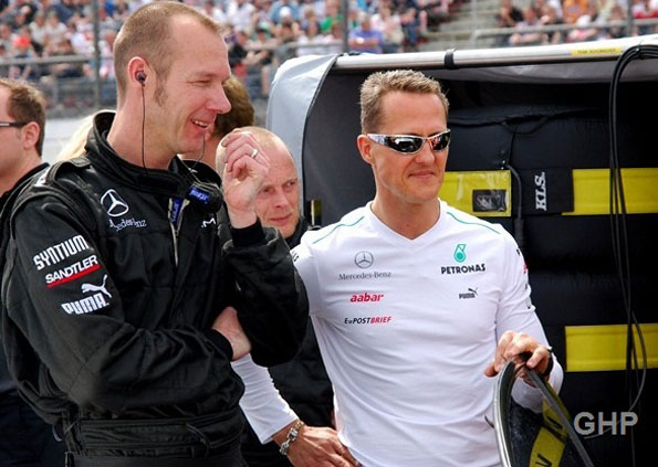 Особо волнующим событием во время открытия нового сезона DTM было появление в Хоккенхайме пилотов Формулы 1 семикратного чемпиона мира Михаэля Шумахера и Нико Росберга: Нико Росберг сделал несколько демонстрационных кругов на историческом гоночном автомобиле Mercedes W196 Хуана Мануэля Фанхио, который принес немецкой марке победу в 1955 году в Монце. Шумахер же появится за рулем прошлогоднего MGP W02, и также проехал два демонстрационных круга, несколько раз притормозив, чтобы поприветствовать ревущих от восторга на трибунах фанов, и завершил свое выступление эффектным разворотом на всей скорости перед Главной трибуной.