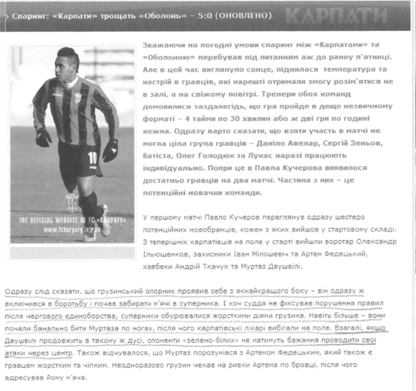Интересно также то, как «Карпаты» начали заметать следы предварительного контракта. Все новости на официальном сайте клуба про Даушвили, начиная с января 2012, отредактированы. «Новичок зелено-белых Даушвили» превратился в «потенциального новичка», несмотря на то, что в первичном виде эти же статьи были скопированы другими сайтами, что позволяет убедиться в этом каждому желающему. Если действительно не было предварительного контракта, зачем тогда эти правки?