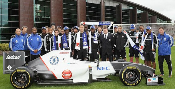 Игроки, тренер Роберто Ди Маттео со своим штабом и исполнительный директор Рон Гурлэй запечатлелись на фоне болида C31, а затем Гурлэй вылетел в Барселону для встречи на испанском Гран-при с гонщиками «Заубера» Серхио Пересом и Камуи Кобаяси, которые получат от него персональные майки «Челси».