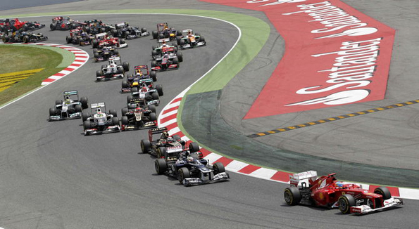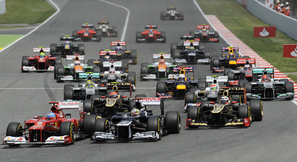 Старт в Барселоні завжди цікавий: минулого року, наприклад, Алонсо зумів вийти в лідери з четвертої позиції, на це раз завдання іспанця було значно простішим і він, використавши весь заряд свого KERS, таки очолив пелотон. Кімі Ряйкконен обігнав напарника і став третім, а ще пізніше протягом першого кола і Росберг зумів обігнати Грожана. Дві позиції виграв Шумахер, жодної Феттель та Кобаясі. Серхіо Пересу найбільше не пощастило – мексиканець отримав прокол колеса в районі 2-го повороту, змушений був одразу ж їхати на піт-стоп і відкотився у хвіст. А Льюіс Хемілтон тим часом за перше коло перемістився на 20-те місце і поступово почав прорив нагору.