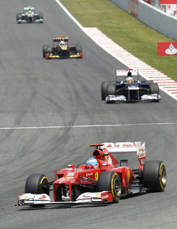 Відмінно гонку провів і прима-пілот Скудерії, але невдале рішення затягнути (порівняно з Мальдонадо) другий піт-стоп, непоступливість Піка (який довго не давав іспанцю обійти себе на коло, за що також отримав штраф) і відсутність бодай одного свіжого комплекту жорстких шин завадили нам побачити напружену боротьбу між лідерами гонки до самісінького кінця.