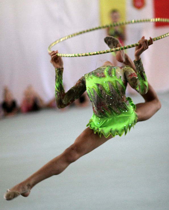 Яна Ярош. Упражнение с обручем в африканском стиле отличается необычными элементами, которые придумывает тренер гимнастки Наталья Билык.