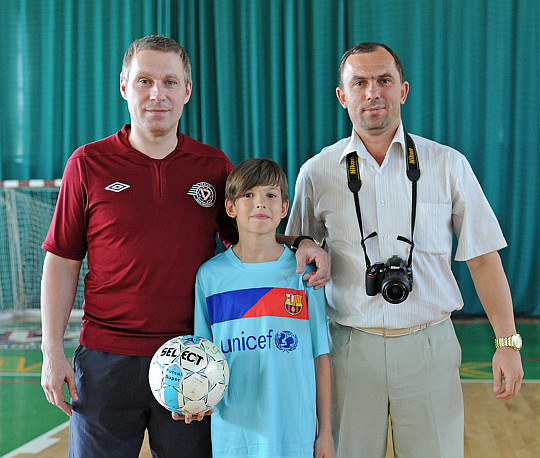 Море позитивних емоцій та незабутніх вражень отримав Михайло Музичин. Адже унікальний шанс сфотографуватися одразу з усіма гравцями має далеко не кожен. Тому свій приз переможець розділив із сином, який також є палким вболівальником «Урагану».
