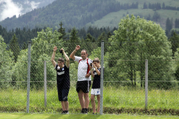 За тренировкой сборной Украины пристально наблюдали местный тиролец с двумя детьми.