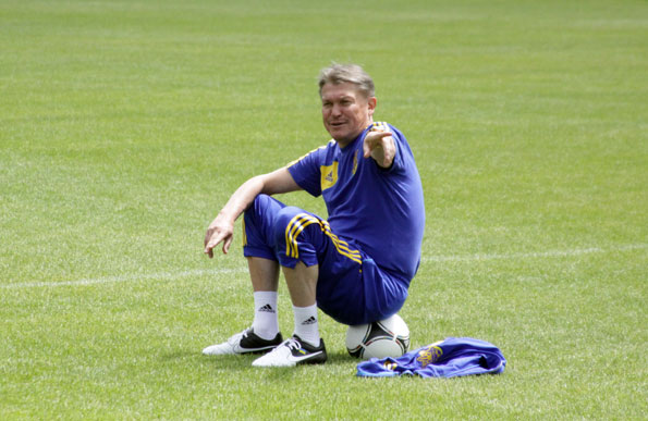 Олег Блохин то ли дает указания игрокам, то ли указывает на выход журналистам :)