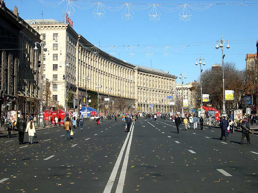 Крещатик – главная улица Киева, расположилась недалеко от местности, где когда-то князь Владимир Великий крестил свою семью, видимо, отсюда произошло и название, хотя по другой версии, название улицы произошло от Крещатого Яра (то есть перекрещенного поперечными оврагами). Крещатик не слишком длинная улица – всего 1,2 км, но средняя ширина сейчас равняется 75 метрам, а на некоторых участках достигает 100м. К концу 19 века Крещатик представлял из себя полностью застроенную улицу. Здесь было множество магазинов, банков, различных контор. Самое трагичное время для Крещатика наступает в годы Великой Отечественной Войны, когда взрываются заряды, заложенные НКВД. В результате этих взрывов и пожаров центр Киева выгорел практически полностью. Сразу же после освобождения Киева в 1943 году, начинаются восстановительные работы.
