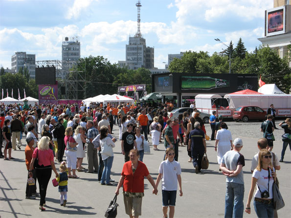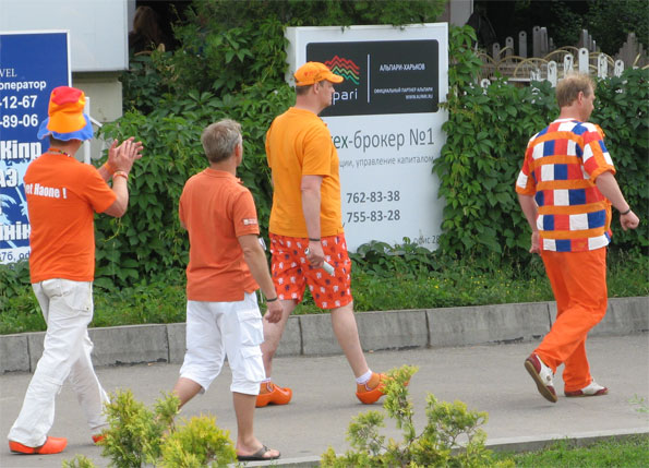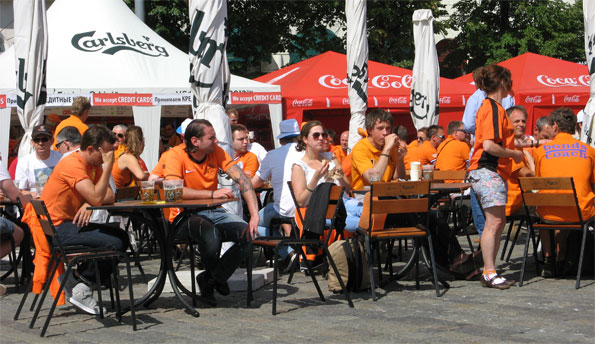 Фанаты из Нидерландов в официальной фан-зоне на площади Свободы в Харькове.