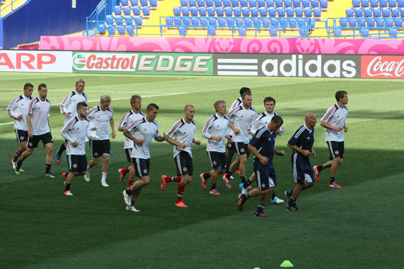 Предлагаем вашему вниманию небольшой фотоотчет о тренировке сборной Дании, которая состоялась в пятницу на стадионе «Металлист».