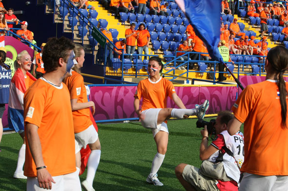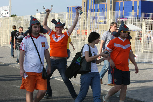 И лишь в самом конце его будет несколько фото, сделанных после матча. Эмоции болельщиков сборной Голландии говорят сами за себя – преодолеть такое расстояние из Страны тюльпанов до Харькова, чтобы увидеть столь бесцветной свою «оранжевую» команду.