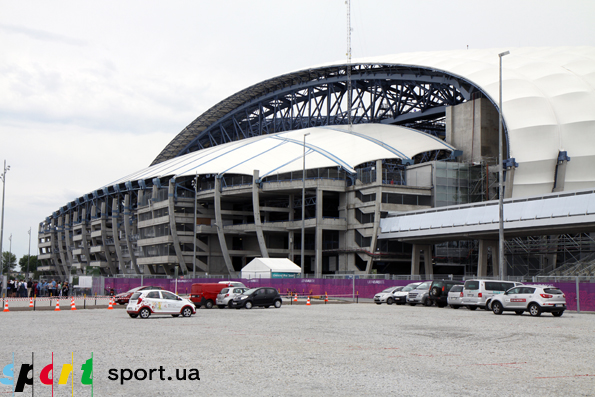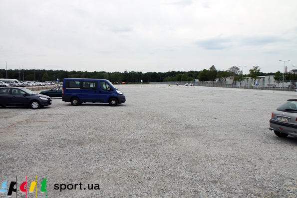 При подходе к стадиону стало ясно, что «что-то тут не так». При приближении бросилась в глаза эстакада для болельщиков, которая просто-таки режет глаз своим ужасным видом. Дальше хуже. Парковки, как таковой, вокруг стадиона нет. Точнее, на бумаге она есть, а на самом деле это просто поле, засыпанное щебнем. Краска с разметкой на «парковке», такое ощущение, была нанесена за пару минут до моего прихода, так как на кроссовке остался след от краски… Страшно представить, что будет, если пойдет дождь и все подходы к стадиону окажутся в болоте. Что-то подобное можно было наблюдать на «Металлисте» в 2008-м, когда было украинское дерби в 1/8 финала Кубка УЕФА. В общем, даже стадион Львова имел нынешний облик познаньского в прошлом году, сейчас же наши арены в полном «адеквате», чего не скажешь про «Мейский» в Познани.