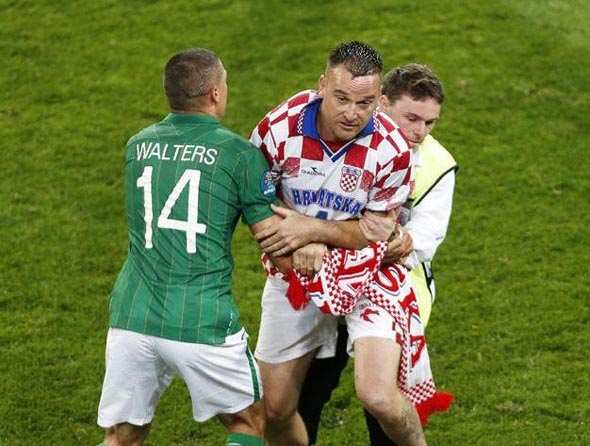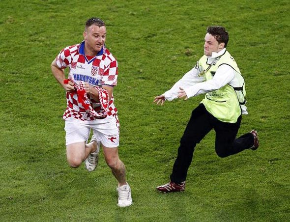 Тренер хорватов усмирил выбежавшего фаната поцелуем