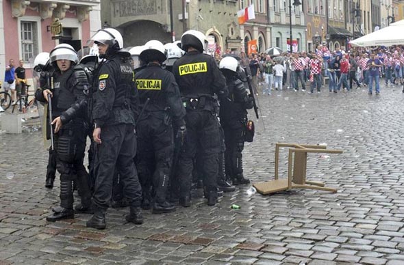 Хорватские болельщики устроили драку с полицией в центре Познани