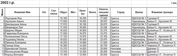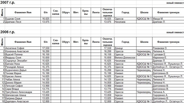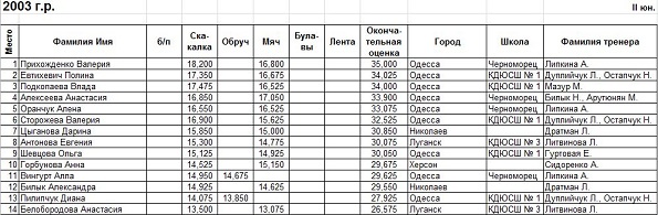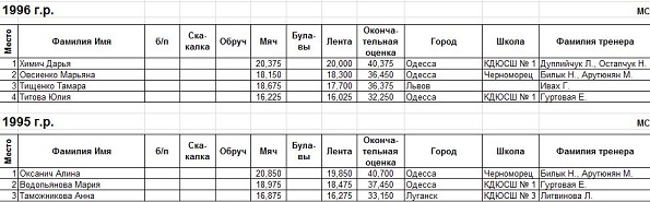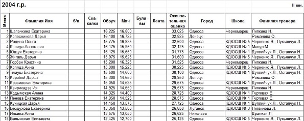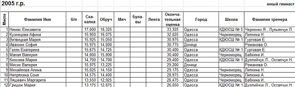 - Что касается наших личниц, то так как в области с мастерами спорта у нас нехватка, то в Запорожье скорее всего Одессу представит Женя Лавренчук и, наверное гимнастка пятой школы Ангелина Говаженко. И может кто-то из тех девочек, которые стот в групповом. Хотелось бы, чтобы они выступили достогйно, показали все свое мастерство, потому как девочки действительно опытные.