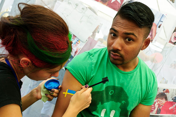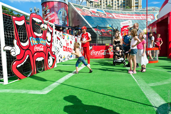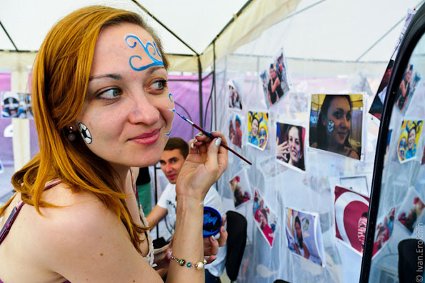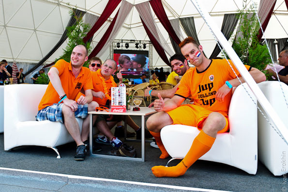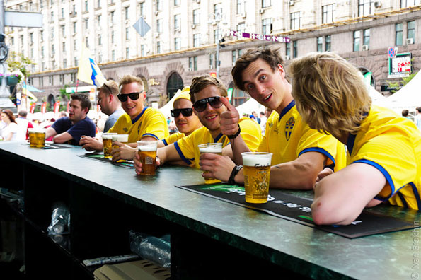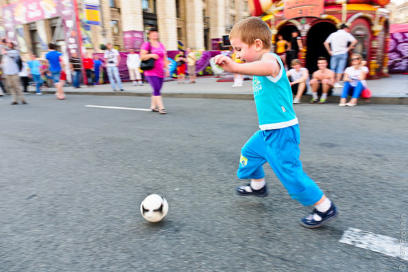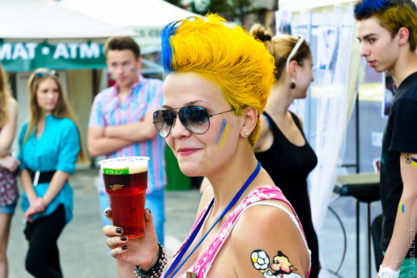 На время проведения Евро 2012 центр Киева превратился в нескончаемый праздник. Здесь весело, активно, пёстро и очень дружелюбно. Фанаты всех национальностей вполне себе мирно пьют пиво, фотографируются друг с другом и активно участвуют во всевозможных конкурсах и играх, щедро проводимых организаторами. По всей фан-зоне что-то лепят, разукрашивают, рисуют на теле, во что-то играют, кричат, танцуют. Даже просто побродить и поглазеть на всё это действо уже интересно. Вот я и гуляю периодически, сохраняя себе и вам на память яркие моменты из жизни евро фан-зоны.