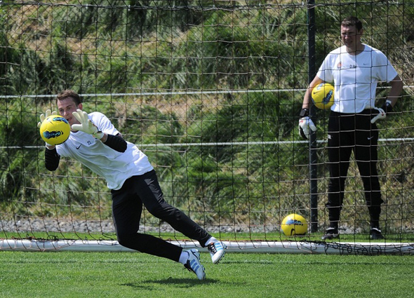 Занятия на знакомом до мелочей стадиончике футбольного клуба «Гоинг» сочетала в себе всевозможные растяжки, беговые упражнения, работу с мячом. Собственно, все как всегда. Сейчас время, когда в центре внимания находятся тренеры по физподготовке Карло Николини и Массимо Уголини.