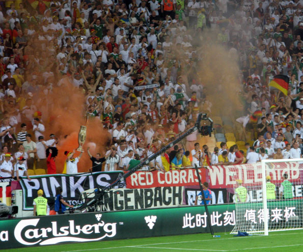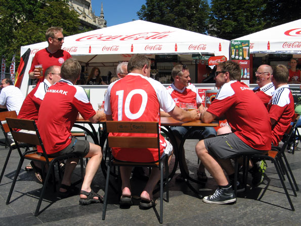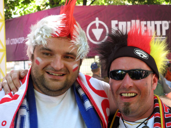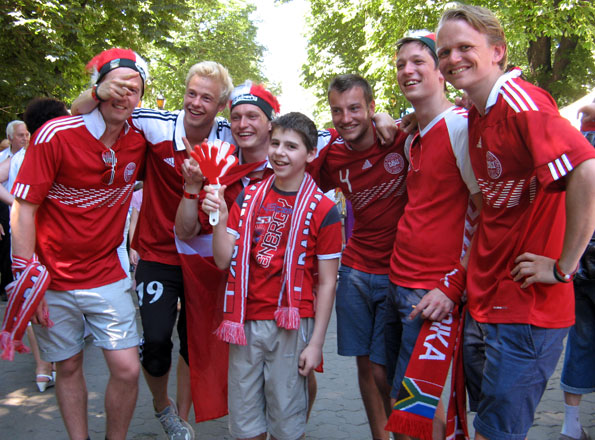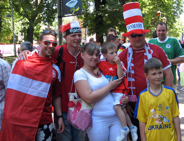 Если накануне матча Германии против Португалии 9-го июня у немецких фанатов достойных «оппонентов» не было, в виду практически полного отсутствия болельщиков с Пиренейского полуострова, то на этот раз датчане, как позже на трибунах и поле «Арены Львов», так и за считанные часы до матча в городе, оказали немцам отчаянное сопротивление. Редкий львовянин, оказавшийся в это время поблизости от очагов фанатского братства, мог, проходя мимо пестрых красно-белых викингов, побороть в себе желание сфотографироваться с ними на память.