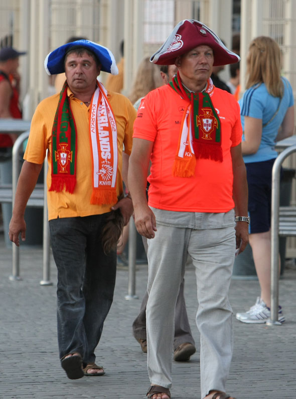 Let's not talk about football that much. Yup, Bert van Marwijk lost his touch, time to go. Thanks for everything, thanks for bringing us to the worldcup final, thanks for 2 almost perfect qualification rounds. No white handkerchiefs for you, not at all. Also a few players have to go, time for new blood, time for youngsters, no time for ego's anymore. But let's not talk about that, let's talk about organisation, about Kharkif, let's talk about beautifull people!