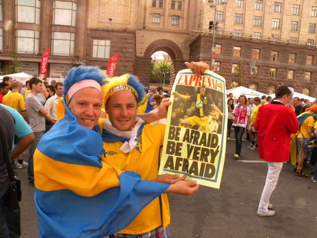 Двое шведских товарищей носили повсюду копию обложки последнего номера «Expressen», призывавшей Англию очень бояться Златана Ибрагимовича.