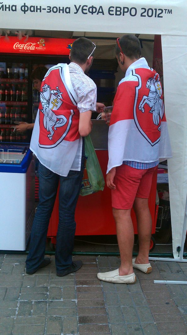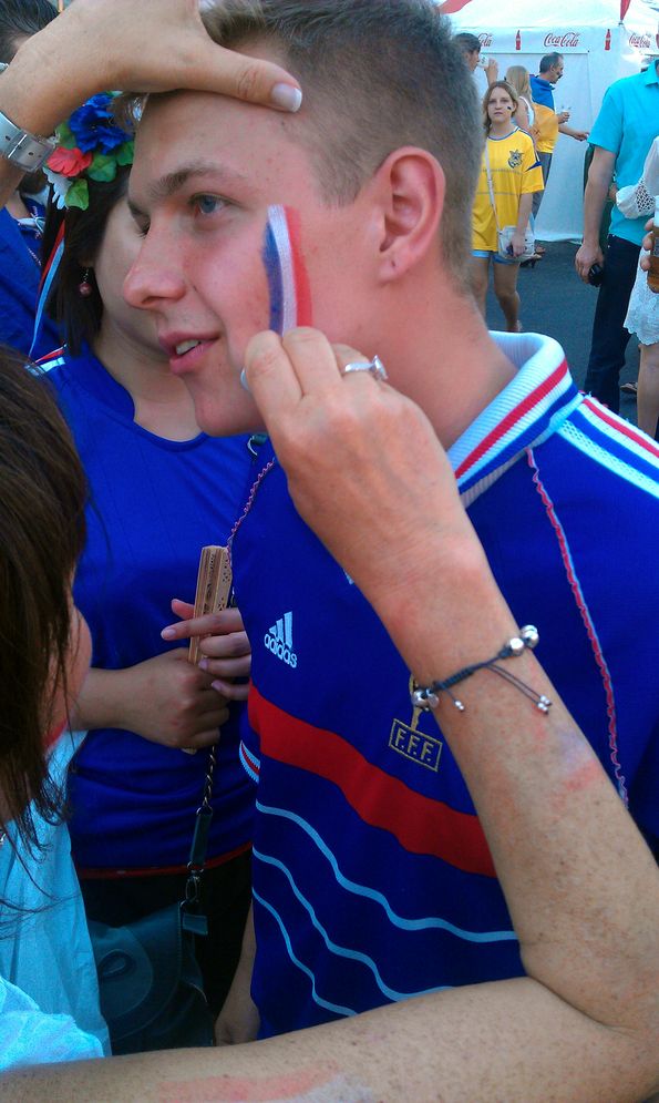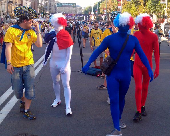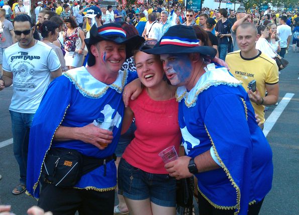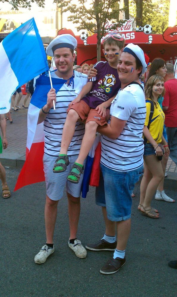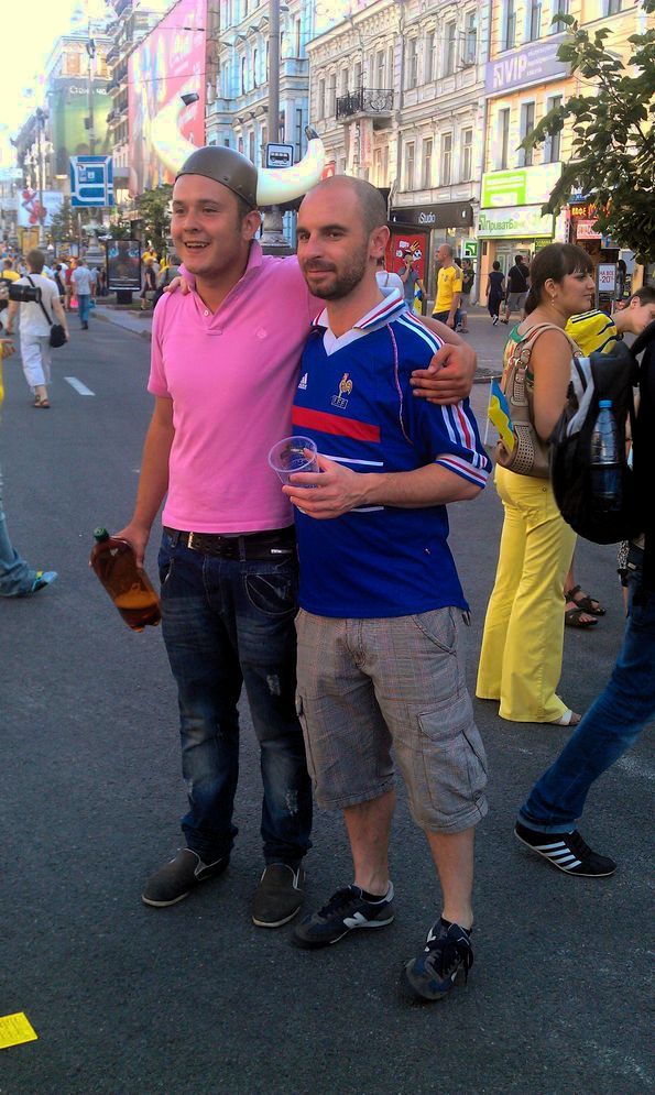 Как и прежде, самые колоритные и креативные фаны становятся легкой добычей наших болельщиков, спешащих оставить себе фото на память о веселых днях чемпионата. Гости Евро с удовольствием позируют и общаются.
