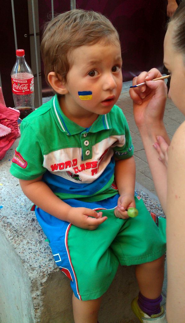 Юный болельщик нашей сборной в нетепении, когда ж его разукрасят.