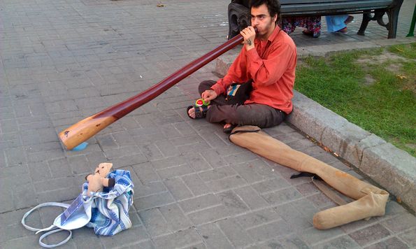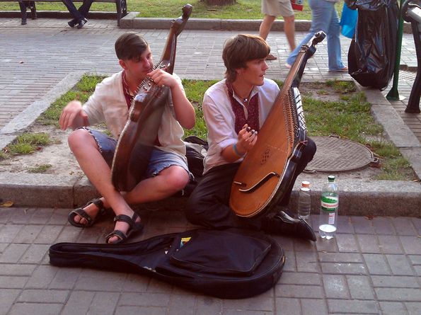 Уличные музыканты обеспечивают альтернативное звуковое сопровождение фан-зоне.