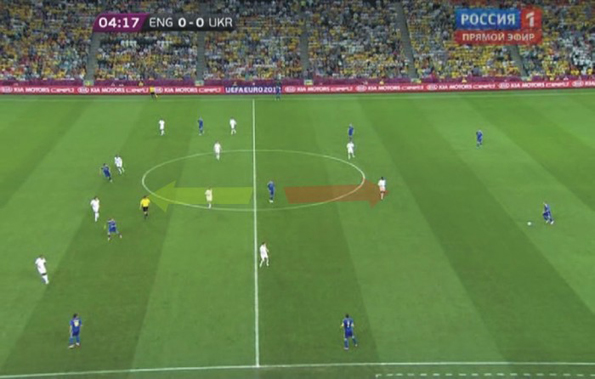 Гармаш (в центре) как связующее звено между линиями украинской команды. Хорошо видно построение англичан.