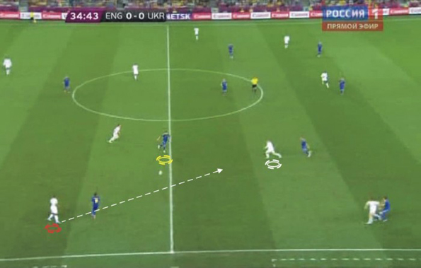 В центре поля обе команды действовали в схожей манере, доставляя мяч через длинный и средний пас на фланги атакующим полузащитникам, либо через индивидуальные действия последних. Но на завершающей стадии украинцы больше использовали проникающие передачи нападающих друг другу вразрез, в то время, как команда Англии предпочитала поперечные передачи в зону (преимущественно верхом).