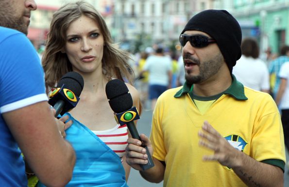 А это наши знакомые телевизионщики из Бразилии. Те самые, которые делали необычный синхрон перед матчем Швеция-Англия.