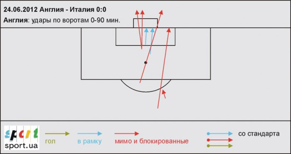 Для матча такого ранга, оказалась удивительной откровенность, с которой сборная Англии 105 минут играла, задавшись лишь одной целью – достичь серии пенальти. Очевидно, Ходжсон сделал основную ставку на стартовый натиск. При этом до проведенных замен, сборная Италии в общем–то не обладала стройностью и мощью в атаке, поэтому можно с уверенностью сказать, что сборная Англии оборонялась явно избыточными силами.