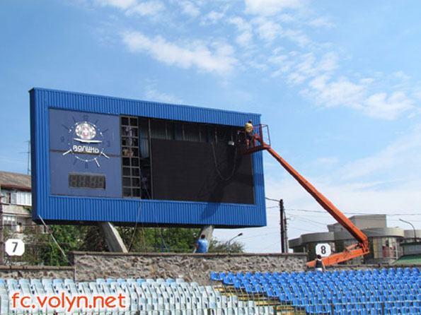 Зокрема, компанія «Фаворит-Спорт» у ці дні закінчує монтаж нового світлодіодного табло. Ця організація спеціалізується на обслуговуванні спортивних об’єктів, а саме футбольних натуральних і штучних полів, табло, сидінь тощо.
